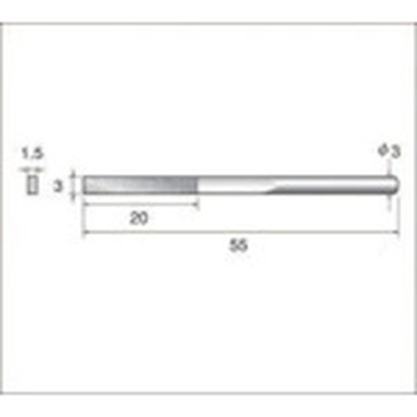 ・ダイヤモンド砥粒を採用し切れ味、耐久性に優れたヤスリです。・精密仕上げ用として最適な形状です。・金型鋼、焼入鋼、超硬等の高硬度金属やセラミックス等の仕上加工に。・各種金型の研磨仕上、機械部品のバリ取りや研磨仕上に適しています。・全長(mm):55・刃長(mm):20・刃幅(mm):3・軸径(mm):3・刃厚(mm):1.5...