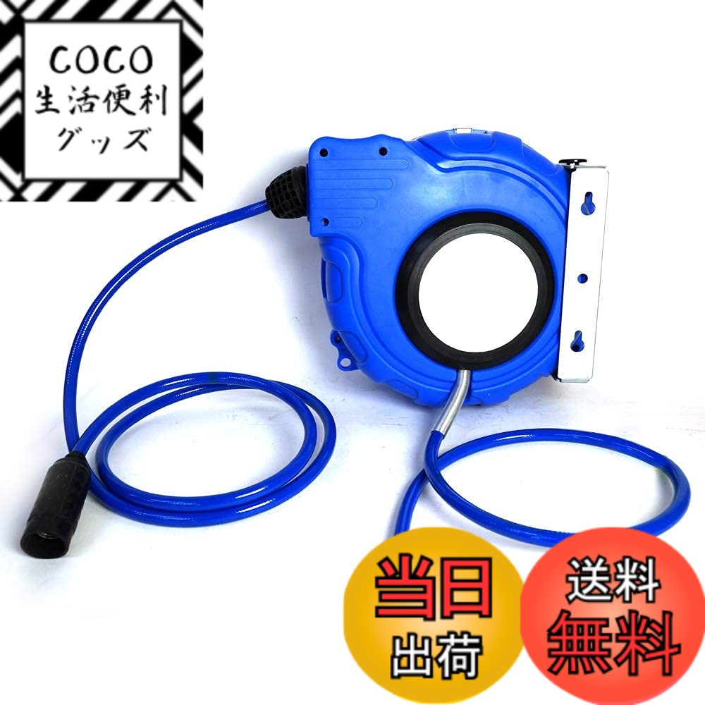 【送料無料】エアーホースリール 15m 自動巻き上げ ブラケット付 ブルー 壁...