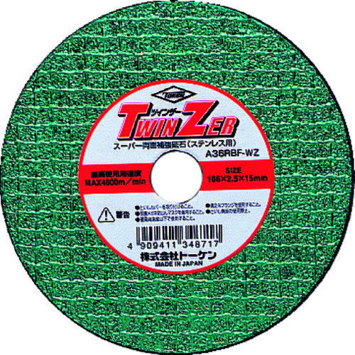 トーケン 切断砥石 ツインザー ステンレス用 粒度♯36 外径105×刃厚2.2×穴径1...
