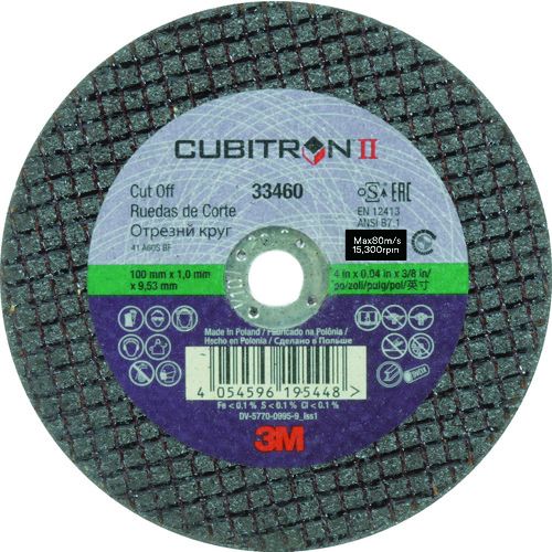3M キュービトロン2 切断砥石 33460 外径100mm 穴径9.53mm 1箱 (33460)