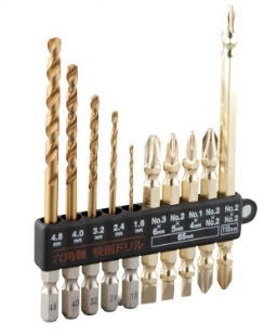 六角軸付き下穴ドリル:1.6/2.4/3.2/4.0/4.8mm 両頭電動ビット:全長100mm/プラス:#2×#2 全長65mm/#2×#2/#1×4mm/#2×5mm/#3×6mm便利なボビーツールシリーズ