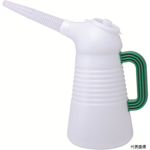 【特長】 ●フタ付でゴミやホコリが入りにくい構造です。真鍮製こし網付です。 ●取手の色が4色で、油の種類別に管理ができます。 ●オイルなど液体の移し替えに適しています。 【用途】 ●オイルなど液体の移し替え。 ●容量(L):2 ●直径(mm):144 ●高さ(mm):295 ●ノズル長(mm):140 ●目盛間隔(ml):500 ●色:緑 ●容量(ml)...