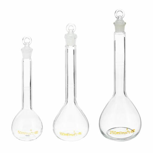 PATIKIL50ml100ml250ml容量フラスコ3.3ホウケイ酸ガラス製目盛り付き容量測...