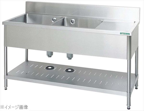 18-0(ステンレス) 水切右付二槽シンク(バックガード付)TX-2SL-150