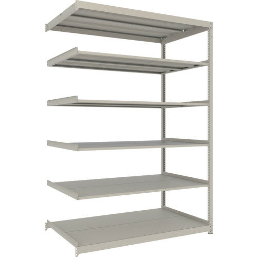 TRUSCO M1.5型軽中量棚 1460X595XH2400 6段 単体 NG M1.58566 (NG) ■特長 ・ボルトを1本も使用していないボルトレス構造で、分解・組み立て作業を短縮できます。 ・棚の段数変更が小刻みな25mmピッチで、自由に調整、変更ができます。 ・高さ、奥行が同じであれば、増結することができます。また、支柱を兼用することに...