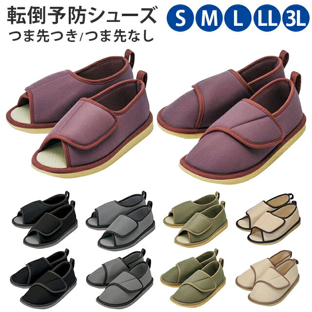 転倒予防シューズ 室内用ルームシューズ S/M/L/LL/3L 滑り止め つま先タイプ...