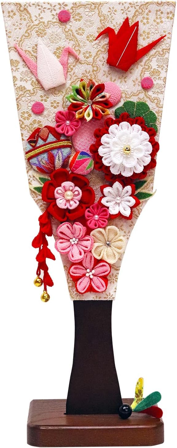 • 正月飾り • ちりめん製羽子板飾り • スタンド付 • つまみ細工 • 高さ30cm