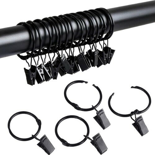 KaiYi カーテンリングクリップ カーテンクリップフック 開口設計 内径39mm 取付簡単 スチール製 20個セット ブラック 【適用サイズ】:リング部分が内径39mmと大きめで、33mm以内のポール・伸縮カーテン棒・突っ張り棒・伸縮棒などにご利用いただけます。 【適用範囲広い】:カーテンリングランナーはシャワーカーテン、窓...