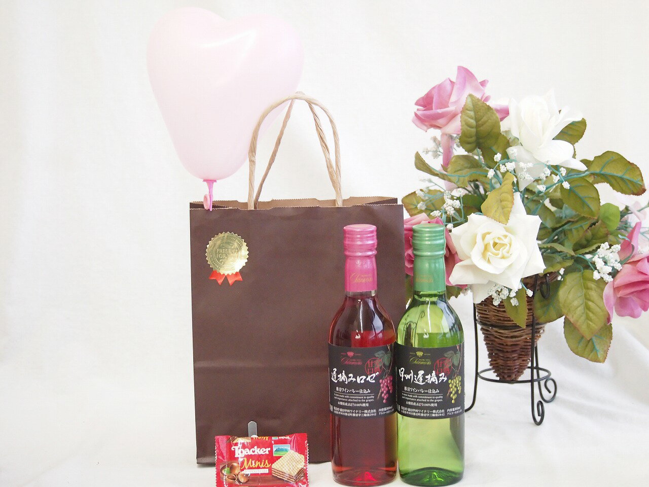 贈り物セットメッセージカード付きハート風船付きミニチョコ付き<お届けについて>> ●ギフト用【納品書等は一切お入れしませんので、ご安心ください】お誕生日 ハート風船ワイン2本セット(シャンモリワイン 甲州遅摘みロゼ甘口(山梨県) シャンモリワイン 甲州遅摘み白甘口(山梨県)) 360ml×2本