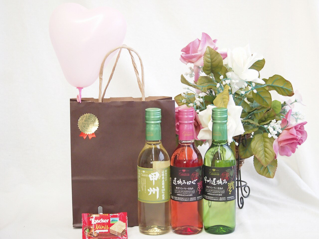 贈り物セットメッセージカード付きハート風船付きミニチョコ付き<お届けについて>> ●ギフト用【納品書等は一切お入れしませんので、ご安心ください】お誕生日 ハート風船ワイン3本セット(シャンモリワイン 甲州遅摘みロゼ甘口(山梨県) シャンモリワイン 甲州遅摘み白甘口(山梨県) シャンモリワイン 山梨県産葡萄甲州...