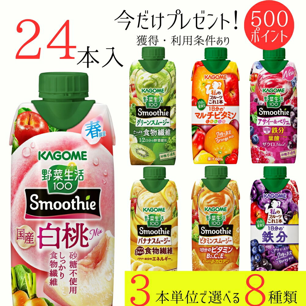 ※送料無料は北海道・沖縄・離島・東北を除きます 商品説明 カゴメのsmoothie6種類から3本単位で選べるお得セット(どの商品を選んでも同じ価格です) ◆商品内容 ・野菜生活100 Smoothieグリーンスムージー 330ml 賞味期限 (メーカー製造日より)180日 ・野菜生活100 Smoothieビタミンスムージー オレンジキャロットミック...