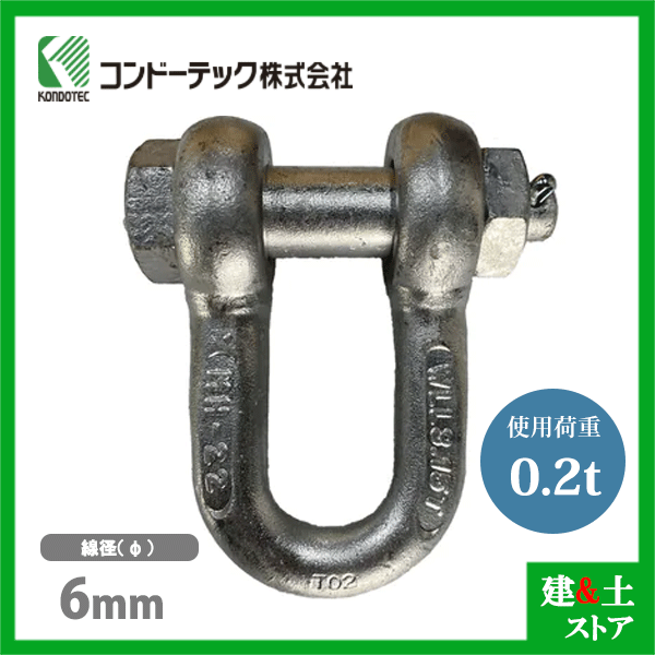 1,240円 ■特長  ●ワイヤロープやチェーンと吊り荷をつなぐ結合金具です。  ●吊り荷の形状、重量に合わせて豊富な種類が用意されています。  ●土木、楊荷作業、船舶の係留など ■仕様 ●呼び:6t ●使用荷重:0.2tf ●口幅:11mm ●頭径:17mm ●長さ:24mm ●穴径:9mm ●ピン径:8mm ●ねじ径:M8 ●メーカー:コンドーテック 【使用上...