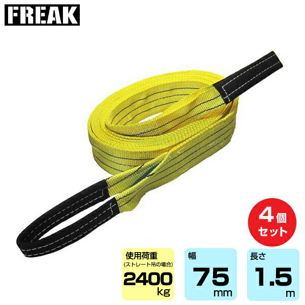 【まとめ買い】4個セット FREAK CEベルトスリングE型 使用荷重2400kg 幅75mm...