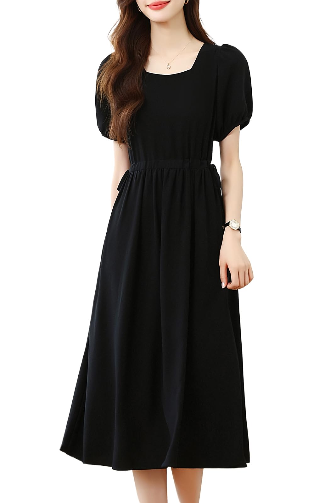 【送料無料】[chubikime] ワンピース レディース 夏 スクエアネック ミディ...