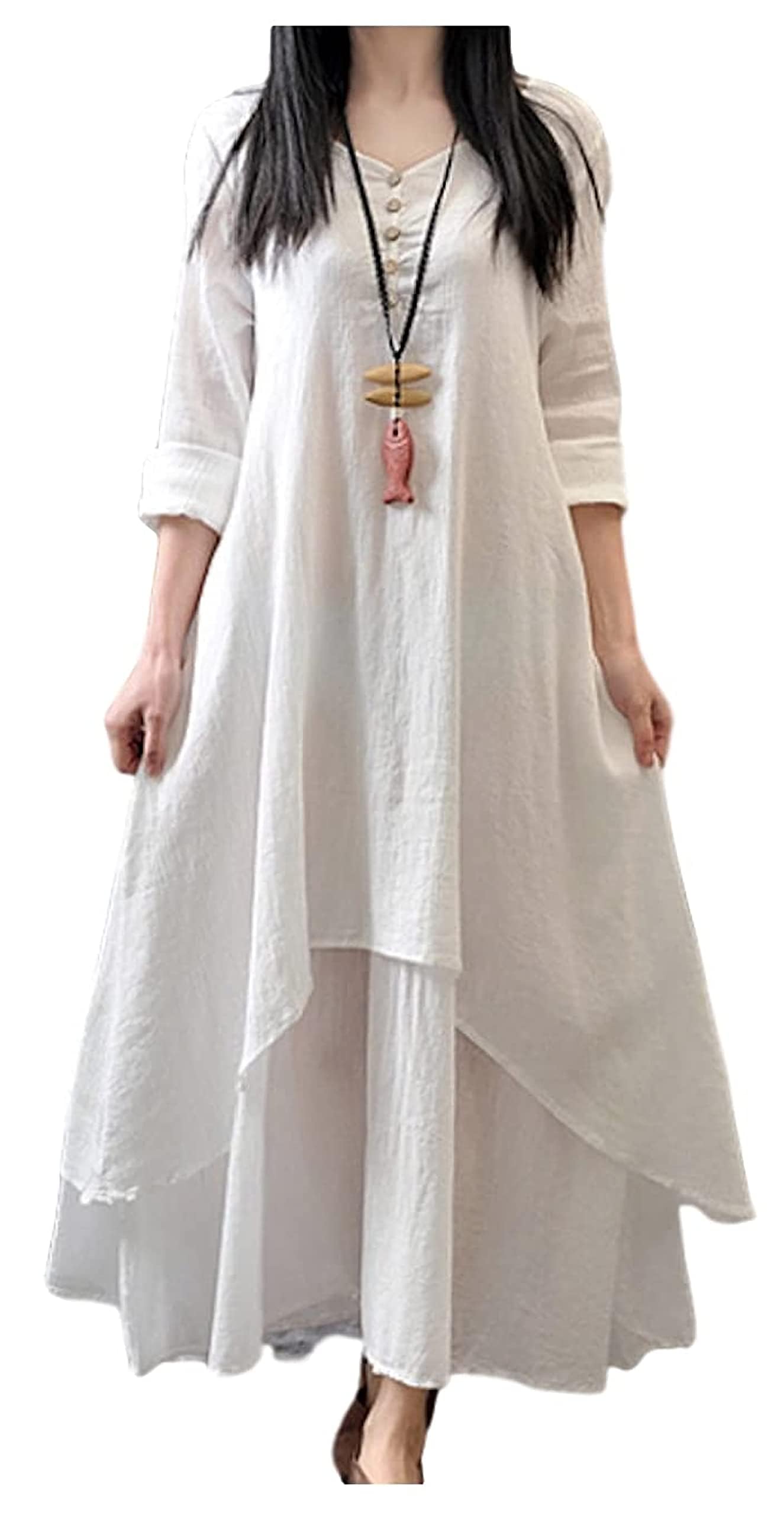 【送料無料】[KEQIKAI] リネンワンピース レディース レイヤード ワンピース...