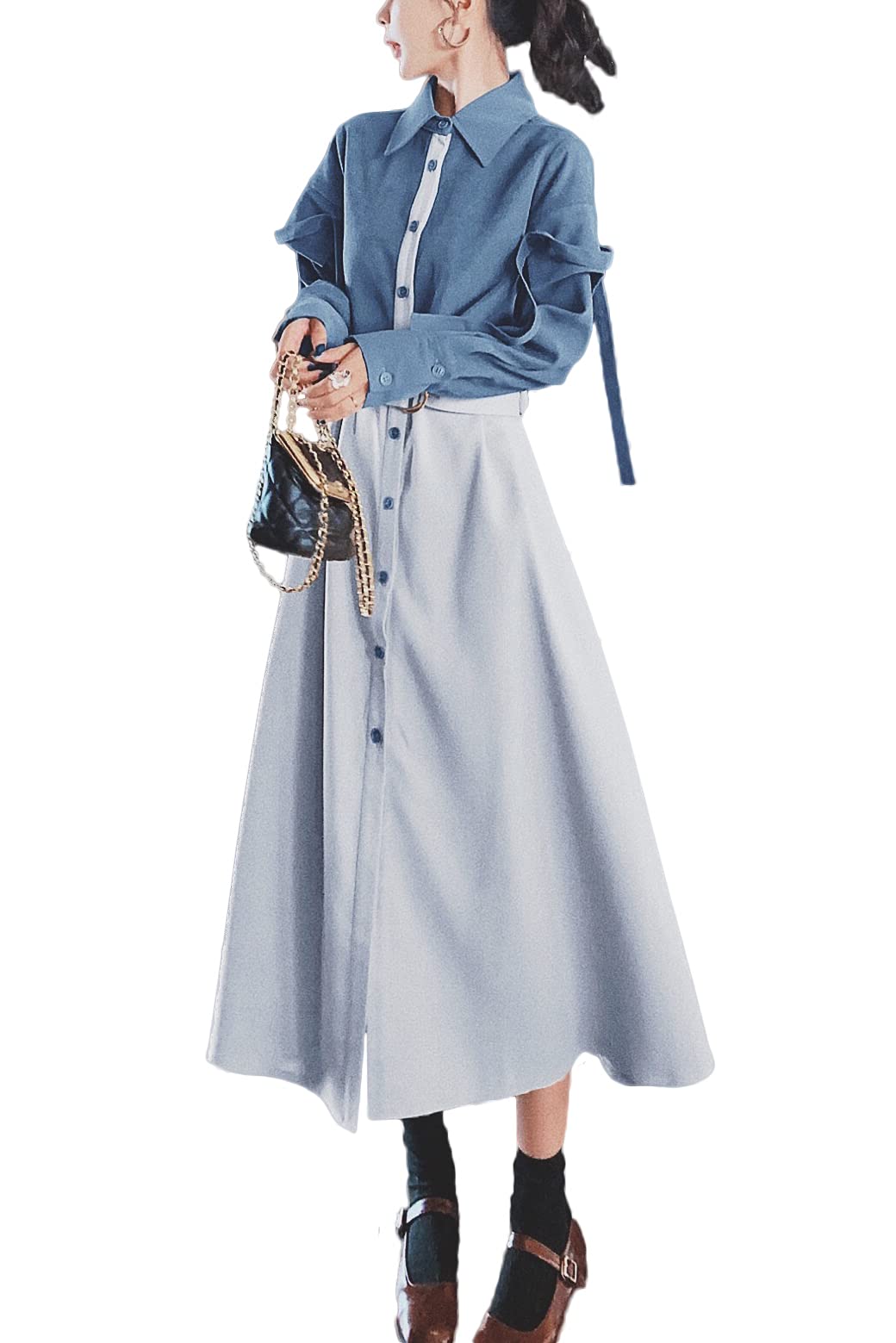 【送料無料】[chubikime] ロングワンピース レディース 秋 春 フェイクレイ...