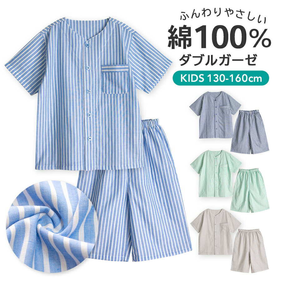 【期間限定10%OFF】パジャマ キッズ ユニセックス 綿100%ダブルガーゼ 半袖...