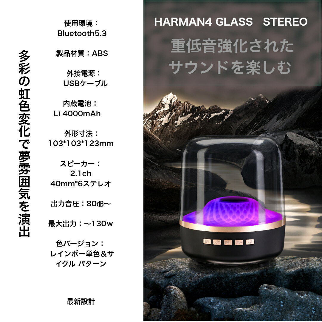 商品情報スピーカーLED虹色変化で夢のような雰囲気を演出。最新デザインで優雅な飾りながら360°ステレオサウンドを楽しむ。【商品スペック】 ■型番:NY-HARMAN ■メーカー:HARMAN ■商品名:LED Bluetooth5.3 スピーカー ■JAN CODE :4560441530642 ■内蔵充電式バッテリー:1000mAh ■動作時間:約1-2時間(理論値) ■充...