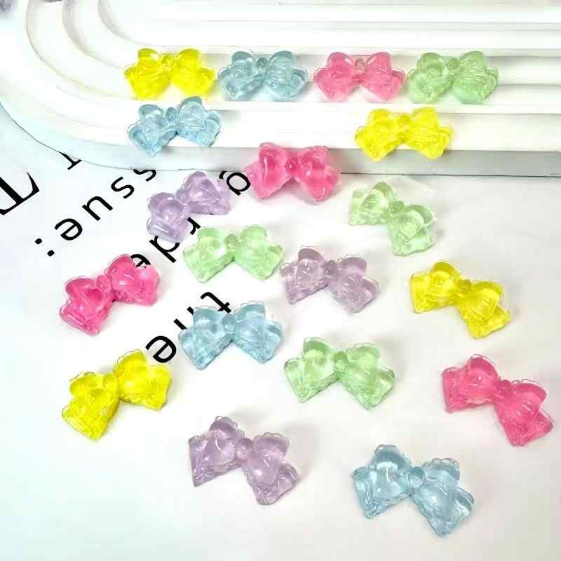・カテゴリ: DIYアクセサリー・主な素材: 樹脂・加工: 滴膠・柄: 蝶結び・スタイル: スイート・カラー展開: 黄色、ピンク、ライトグリーン、ライトブルー、紫色、混色・サイズ展開: 小