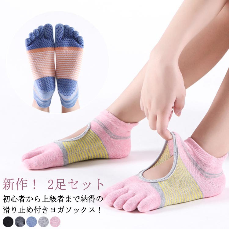 送料無料 2足セット ヨガソックス つま先あり 5本指 滑り止め 五本指 ソック...