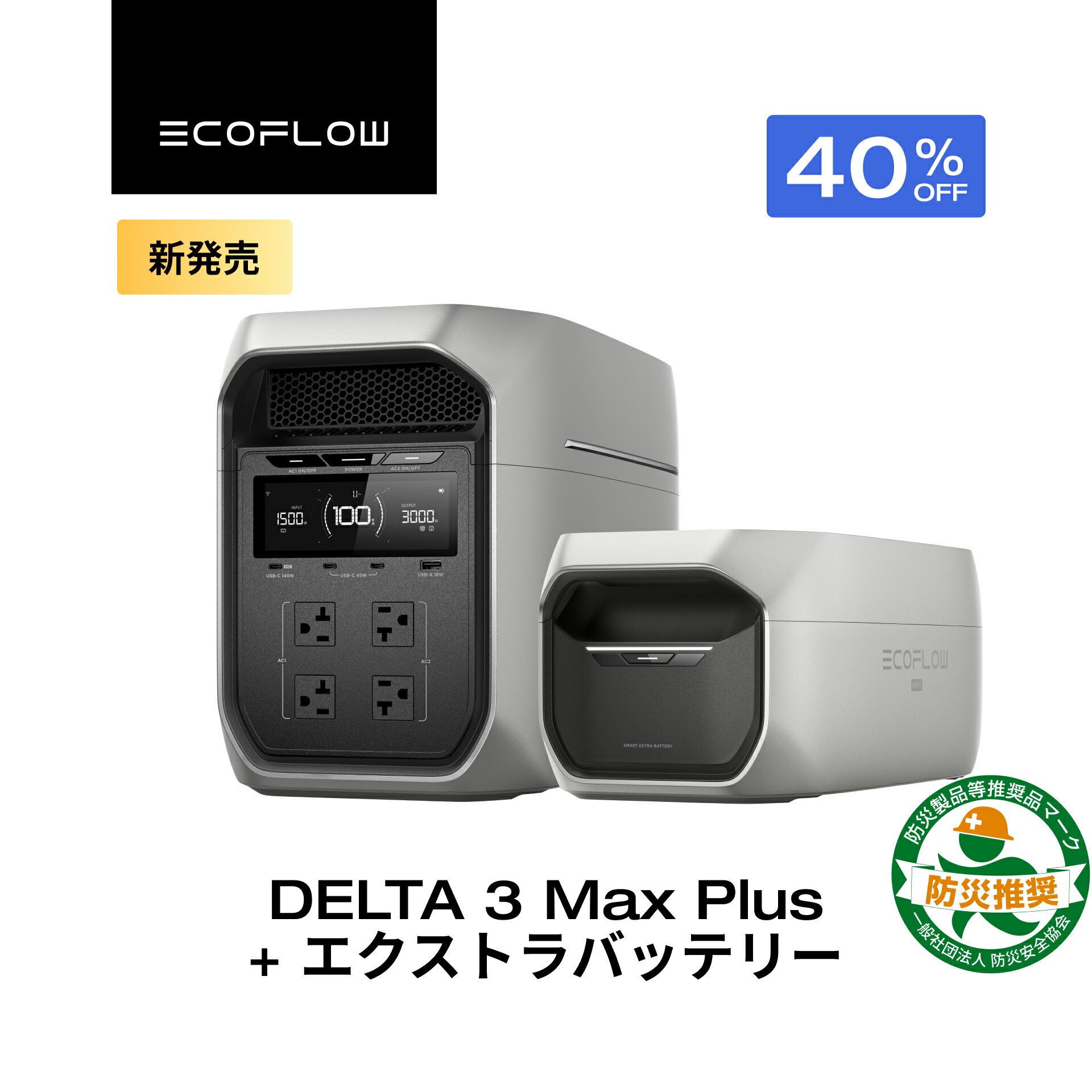 商品情報 製品 DELTA Pro ポータブル電源+ DELTA Pro 専用エクストラバッテリー ポイント1 【さらに容量拡張可能】 DELTA Pro(デルタプロ)ポータブル電源には専用の容量拡張バッテリーを最大2台接続することで、容量を10,800Whへと増やすことが可能です。これは停電時に必要な家庭の電力の約6日間の容量に相当し、あなた...
