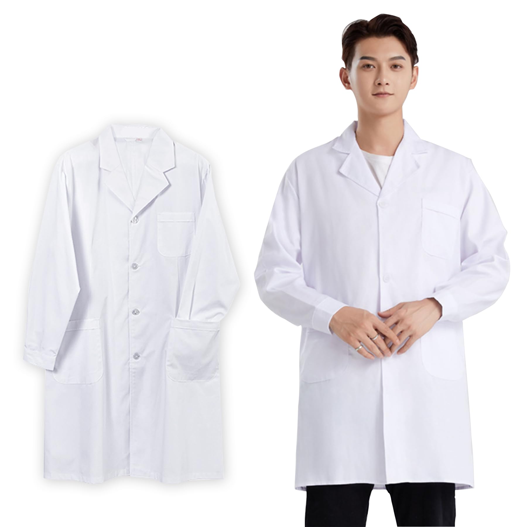 商品情報商品の説明説明 この白いコートは高品質の綿生地で作られており、吸湿発散性があり、肌に優しく快適で、長時間の着用に適しており、毛玉や縮みがなく、耐久性と快適性をします。 学生、医師、研究室、薬局、美容院などの場面に適しており、さまざまな職業やシナリオのニーズを満たし、非常に実用的です。 生地に...