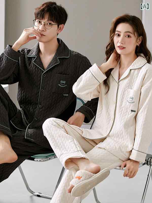パジャマ 男女兼用 ペア 綿100% 空気綿 超厚手 保温 あったか 伸縮性 通気性...