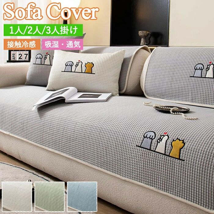 ソファーカバー かけるだけ ひんやり 夏 接触冷感 猫柄 猫 かわいい セパレ...