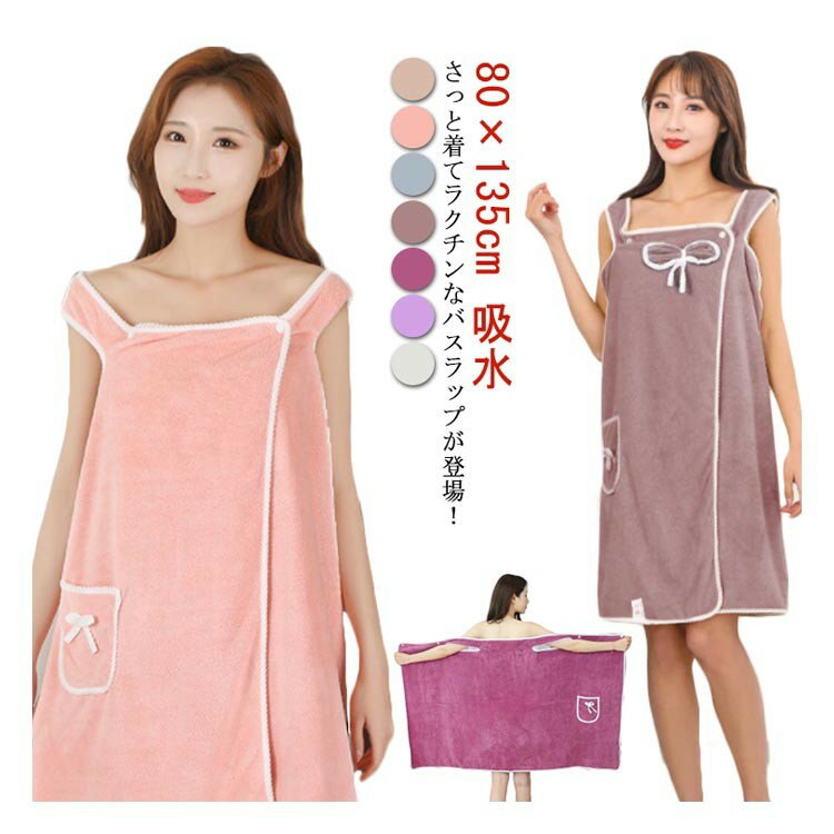 吸水 バスタオル 80×135cm バスラップ 大人用 胸元ボタン 巻きタオル レディ...