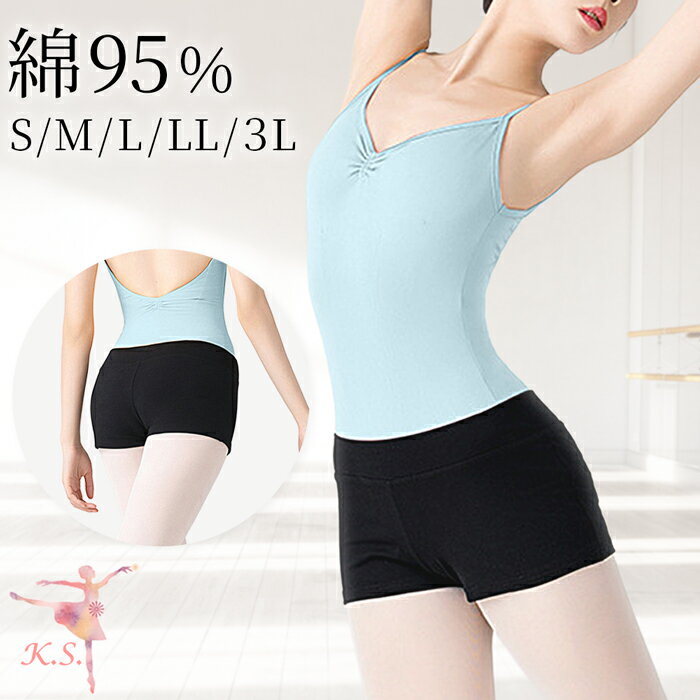 バレエ ショートパンツ 黒 綿95% オーバーパンツ 大人 ジュニア 大きいサイ...
