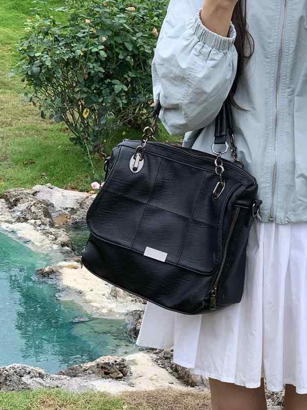 ・カラー: ブラック, ホワイト・素材: PU・バッグのトレンドスタイル: トートバッグ・バッグのサイズ: 中・流行の要素: ステッチ・裏地素材: ポリエステル・バッグの形状: 横長方形・開閉方法: ジッパー・バッグ内部構造: ジッパー付き内ポケット, スマートフォンポケット, IDカードポケット・硬さ: 柔らかい・外部ポケ...