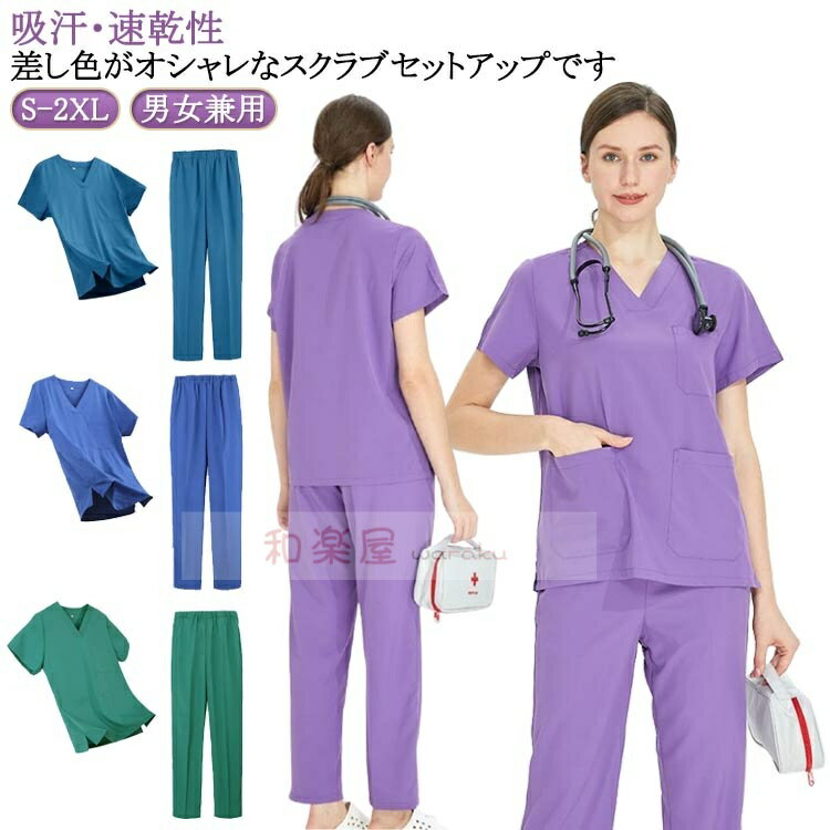 【2点600円割引】スクラブ ストレッチ ズボン 男女兼用 速乾 半袖 メンズ ユ...
