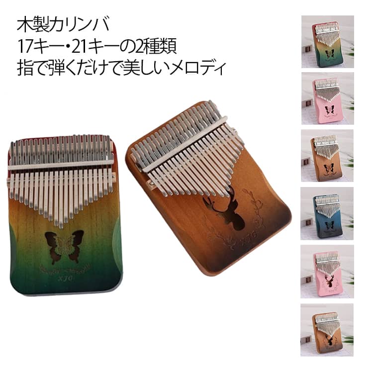 カリンバ 音階刻印 初心者セット 17キー 21キー シカ柄 蝶々柄 木製 子供用 ...
