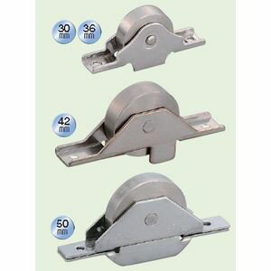 特徴 車輪外径:90mm 軸(ボルト):M12 自重:910g 車輪材質:鋳物(鋳鉄) 車輪形状:V(溝V)型 枠材質:車のみ(枠無) 使用レール:アングルレール ベアリング型番:#6203ZZ 特徴:ベアリング入り 特長:ベアリングを使用していますので耐久力に優れています。 用途:門扉・工場・出入口用扉・各種倉庫etc. 備考: 車の材質は鉄...