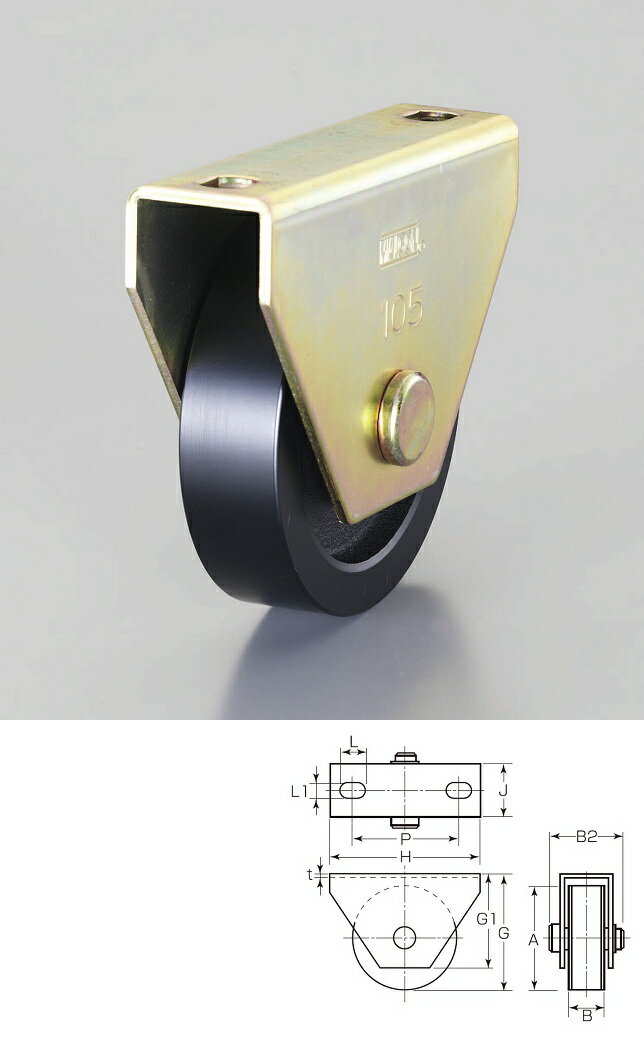 ヨコヅナ 072-923-3981 ●ベアリング内蔵で、耐久性に優れます。 ●枠と車との間にスペースを設けているため、レールに多少のゆがみやズレがあってもスムーズに開閉します。●門扉・工場・出入口用扉・各種倉庫など。●許容荷重(kgf):390●車輪径(mm):120●車輪幅(mm):28●取付ピッチX(mm):115●取付穴径P(mm):2-...