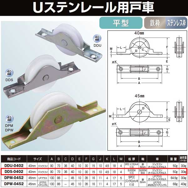 ヨコヅナ Uステンレール用戸車 ステン枠 ジュラコン車 40 平 DDS-0402