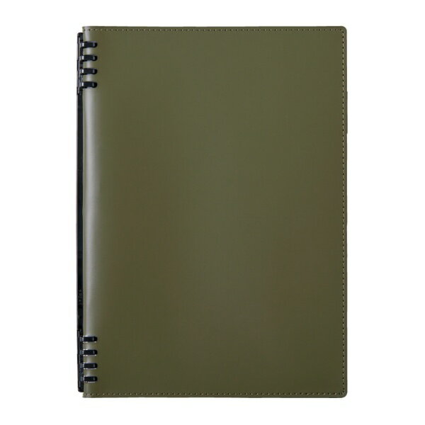 ●落ち着きのある色味、上質な質感。●日常的に使うものだからこそ、こだわった一品を。●サイズ:B5●色:オリーブ●材質:合成皮革(PU)、PP(表紙)、PC(とじ具)