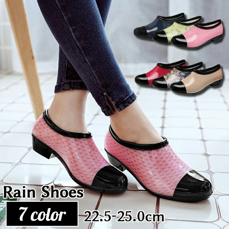 送料無料 レインシューズ 防水シューズ ショート丈 ヒール高3cm レディース ...