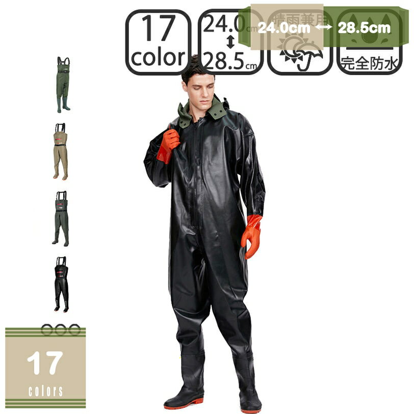 ◆◇◆人気の秘密◆◇◆ 【チェストハイタイプ】肩まで完全防水なので、胸下までの水中作業・水跳ねの多い工場作業・漁業作業・農作業にも最適です♪ 【ソール/靴底】ラジアルソールを採用しており、バス釣りや防波堤には最適です。 また、川底の危険を軽減出来るよう、 靴裏は厚底になっており踏みつけ怪我の防止になり...