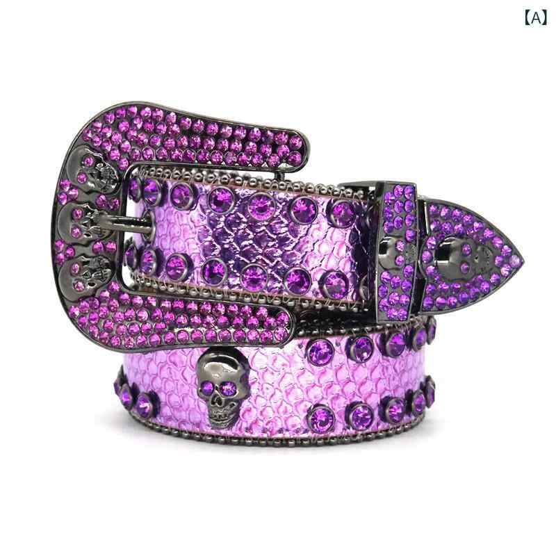 ・主な素材: PUレザー・バックル素材: 合金・留め具: ピンバックル・要素: コーンスタッズ・幅: 普通タイプ (2-4cm)・サイズ展開: 100cm、105cm、110cm、115cm、120cm、125cm・スタイル: パンク、ストリート、個性派、ヒップホップ、SNS風・: 亜鉛合金製スカルモチーフ・加工: ラインストーン、ハンドメイド・柄: ヘビ柄