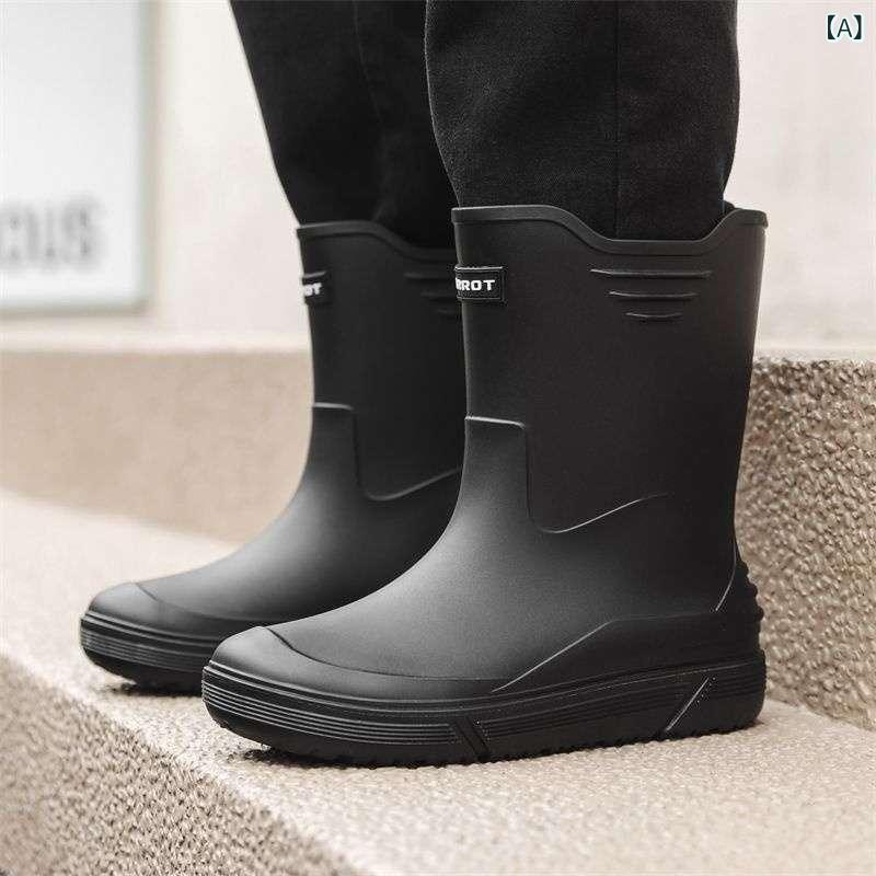 レインブーツ 男性用 メンズ 長靴 ミドル丈 防水 防滑 耐摩耗性 保温 あった...
